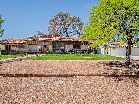 Enjoy one of the premier lots that Tucson Country Club Estates has to offer. This spacious hacienda exudes character with saltillo tile, wood flooring, high ceilings, lots of large windows to capture the views, 3 fireplaces, Mexican tile accents and built-ins. A recent gorgeous remodel of the primary bedroom and en suite bathroom with a private patio area boasts a huge wood burning fireplace to take advantage of the views. Great room opens to a pleasant Arizona room overlooking the lush back yard. Enjoy the finest country club that Tucson has to offer. Premier golf, tennis, heated pool, gym and restaurant are available with a membership to the Tucson Country Club. 2.8 miles to TMC, 2.6 miles to St, Joseph's. Travel nurse friendly, short term partially furnished.