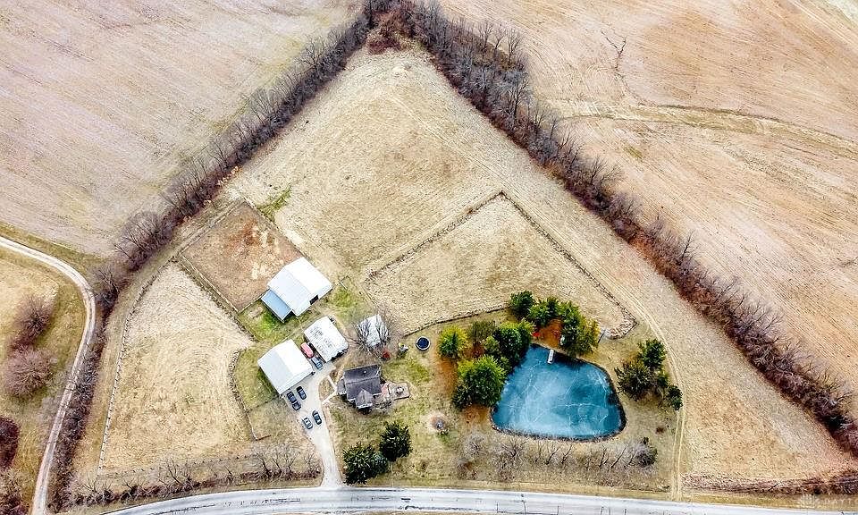 Country Living! This 8 Acre property is being used as a Cattle and hog farm. It also yields hay for livestock! With 4 out buildings 40x28, 48x50, 40x40, 20x24. One with a nice lean to. With pond. All buildings have electric. This cozy well constructed & maintained 1,092 sq ft home is all you need. Move in ready. With 2 bedrooms, plenty of room for third bedroom, and 1 bath. With central air and whole house cooling fan for energy saving. All new 2005, in Basement, glass block, Windows, steps, door, water heater, well pump, water softener. New deck 2004. Two separate meters to house & barns. Has been used as a horse farm as well. Lean-2
