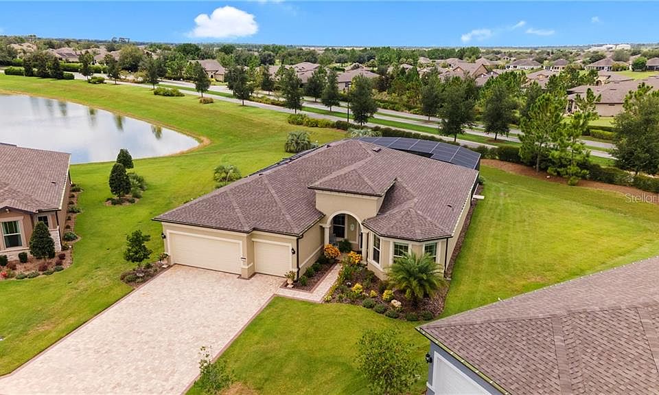 Pinnacle 3/3/3 with pool!!!! This one if really going to catch your eye with the outstanding entertaining area in the back of the home. Pavers on driveway and entrance walkway. Landscaping with palms in front and rear of home. Enter through 8' front door and you will immediately see the tile floors with wood look, crown molding, custom paint, den doors, custom ceiling fans and lighting, custom drapes and blinds, 8' doors throughout, ORB accents throughout, laundry cabinets, and so much more. Master suite has tray ceiling, soaking tub and large tiled shower, closet organizers and custom ceiling fan and window treatments. Kitchen has glazed cabinets with luxury upgrade package, custom backsplash, custom pendant lighting, SS appliances and built-in, and upgraded granite. Now that we have seen the highlights of the interior, you will immediately notice the pool area with large screen enclosure, custom pool with fountain, and large entertain deck space. You are going to want to put this home on the short list for sure....