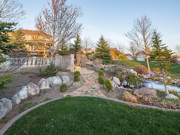 Absolutely gorgeous family home on sprawling .69 acres! Soaring vaulted ceilings, huge picture windows and a views, views, views! Custom gourmet center-island kitchen features slab granite counter tops, rich cherry cabinetry, stainless appliances, custom travertine flooring and tile backsplash. Elegant living room bathed in natural light. Luxurious master suite with huge walk-in closet, dual vanity, garden tub and separate shower w/glass block accent. Huge walk-out basement complete with wet bar and above ground windows overlooking a park-like setting. Nestled in a perfect neighborhood near the mouth of American Fork Canyon and close to Murdock Trail. Incredible yard with beautiful, water feature and lighted sport court. Even the fussiest buyers will be impressed – this home is to die for! Buyer is to verify all measurements and information.