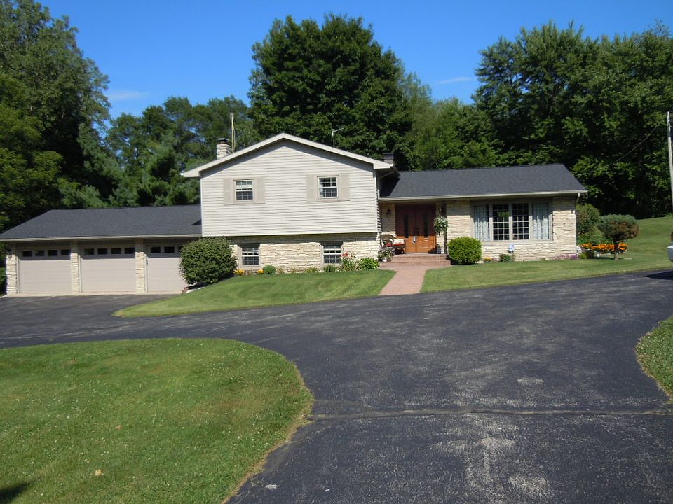 This is a beautiful updated home on five gorgeous acres. Three large bedrooms, 2 and 1/2 baths all remodeled, newly remodeled custom kitchen . This is a dream kitchen. Living room, formal dining room,Family room with wood burning fireplace; This home is in pristine condition and has been well cared for. The lovely property is so perfectly landscaped. This is a must see home.