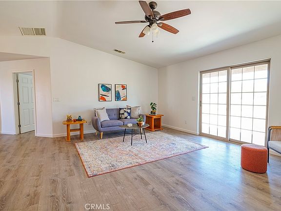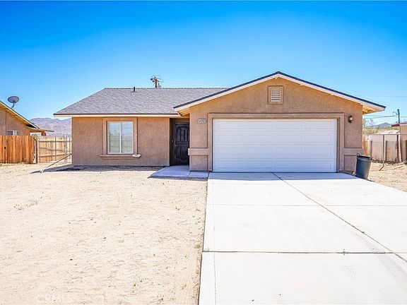 This desert home invites residents to experience the serenity of the desert landscape and culture. This TURN-KEY property features 3 bedrooms and 2 bathrooms with 1,344 square feet of living space. Welcome to your family's favorite gathering spot – a warm and inviting family room seamlessly connected to the heart of the home, the kitchen. This open-concept space combines comfort, functionality, and style, creating the perfect backdrop for making cherished memories with loved ones. The kitchen comes with a farm house sink with granite countertops and soft close cabinets. Each room in the home has it's own mini split for cool comfort and heating. The home has been freshly painted inside. New roof as of April of 2024. Home has a Solar loan with Divided. This cozy home is the perfect starter home or weekend getaway, waiting just for you. Seller is very motivated !