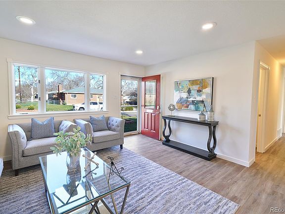 Beautifully renovated and remodeled home in Arvada West subdivision. This home has new professional painting, and luxurious tile, carpeting or LVP flooring throughout. The kitchen has been expertly redesigned and remodeled with custom cabinets, white quartz counters, subway tile backsplash, new skylight and new stainless appliances. The dining room has new recessed lighting and a glass door that provides an enticing natural view to the deck and backyard. The large deck is covered and offers a weatherproof venue for outdoor enjoyment. The Primary bedroom has an updated and enlarged ensuite 4-piece bath to serve as your private sanctuary with lovely tiling, a jetted tub and separate shower. The remodel created a large second bedroom and a new full guest/family bathroom on the main floor. The family room in the basement is your fun entertainment space for theater or large gatherings with an adjacent bar area and seating. The basement is completed with two non-conforming bedrooms, one with a window, a 3/4 bathroom and a large laundry area with utility sink. The finished garage is fully insulated and heated with great lighting, skylights, 220v outlets and a durable and attractive epoxy floor. It is also ENORMOUS - 50x24, accommodating up to 6 cars! Great for a car enthusiast, someone needing a personal shop or just an abundance of excellent bonus space. The owner employed a licensed electrician to test all the electrical components and has spared no expense updating. Two new electrical panels provide ample circuits and opportunity for future growth. When you drive up, you will also notice the fantastic curb appeal of a professionally landscaped front yard. This home has it all!