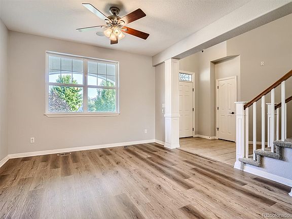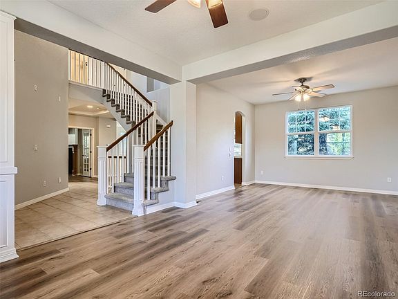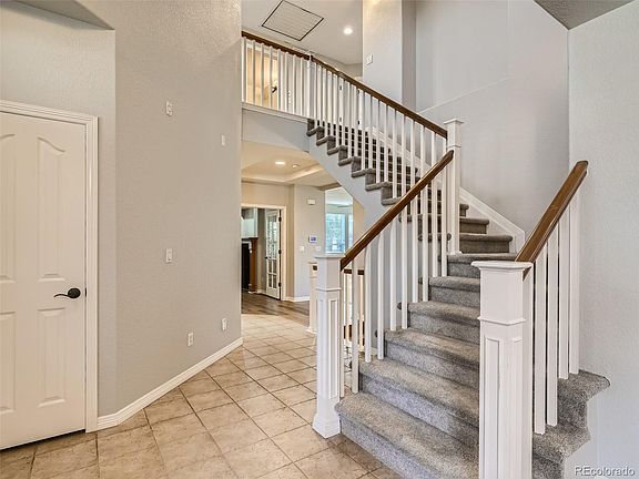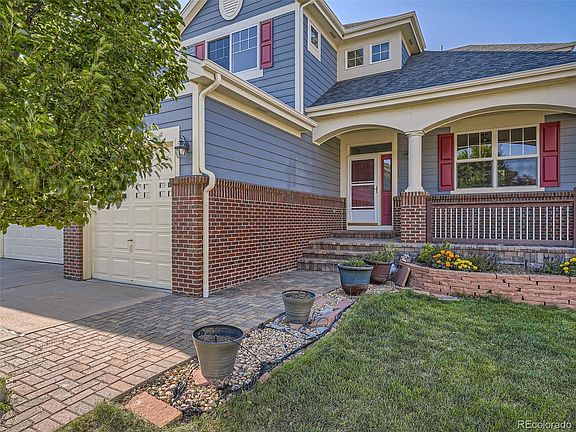 PRICE REDUCTION!!!!!!!!! This stunning 4 bedroom + OFFICE Saddle Rock home stands as a testament to elegant living and impeccable maintenance. With a multitude of features designed to enhance comfort and style, this home is truly a gem in the heart of a vibrant community. Located on a cul-de-sac and backing to the golf course and open space, this lot has plenty of mature trees and privacy. Upon entering, take note of the Coretec flooring and carpet (replaced 2021). The kitchen boasts double ovens, updated stainless steel appliances and solid wood cabinetry. The office, with french doors, is complete with built-ins, a fireplace and a wet bar. There are 2 living areas, one with another fireplace, and a dinning room, plus main level laundry to complete the first floor. Upstairs, find a spacious primary bedroom with a 5-piece bath and walk-in closet, as well as 3 additional bedrooms and 2 full baths. One of the bedrooms is en-suite with its own full bathroom. An unfinished basement awaits your creative touch. The backyard features a massive deck, grassed lawn on the side and a hot tub. The property also boasts a three-car garage. Recent upgrades: FRESH PAINT throughout entire home, air conditioning (HVAC) system (2023), water heater (2023), roof with class 4 hail-resistant shingles (2014). Community amenities include walking trails, golf course, recreation center with a pool, parks, open space and playgrounds. Click the Virtual Tour link to view the 3D walkthrough.