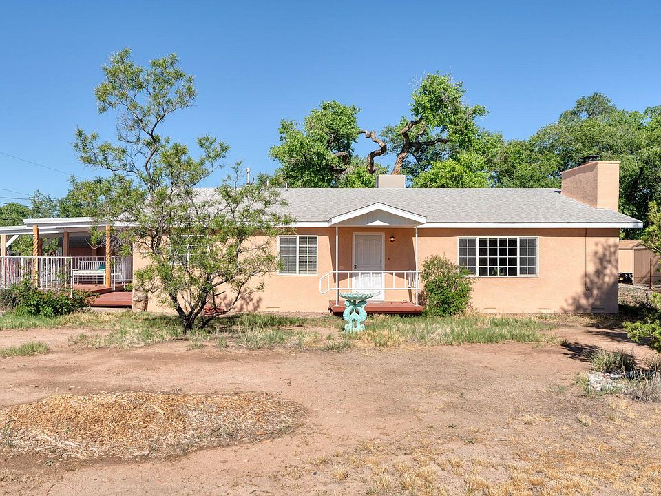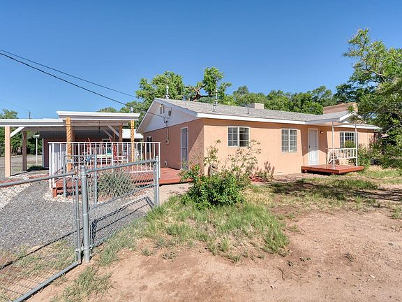 Welcome home! Don't miss the opportunity to own this comfortable, bright, adobe home on an easily accessible 0.85+ acres. Secluded from main roads, yet just minutes from amenities such as shopping, restaurants and trails. Close to Rio Grande Bosque and Tome Hill. Significant updates in the last 2 years include the bathrooms, some flooring, the furnace, water heater and cooler. In the last month, more improvements were completed, including a new dishwasher, range hood, light fixtures and stucco work. Spacious front, side and backyard areas plus covered parking, garage, workshop space and storage. The side yard could be the orchard you've always dreamed of! Well cared for home with character and color, ready for a new owner. See it today!