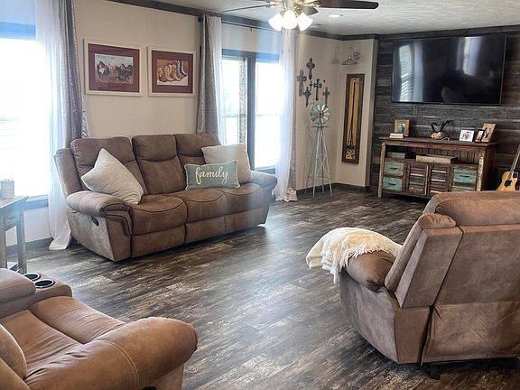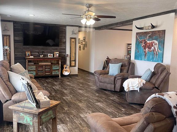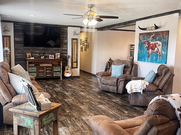 Beautiful 4 bedroom 2 bathroom home with tons of space. Huge 1 acre lot. Fully fenced with a brick wall. Front yard is fully landscaped with a drip System. (Lines are already set for the back yard as well). Large pinon trees lining the yard. Inside the home features a large kitchen island with a farmhouse sink. Gas stove and huge walk in pantry. Tons of windows for natural lighting. Two bar areas which are perfect for a coffee bar. Refrigerated air. Large master bedroom with a huge bathroom double sinks and a built in vanity. Double vanities in both bathrooms. This home has it all! Large backyard there are so many opportunities! Recessed lighting throughout the home. Enough space for your whole family! Call you favorite realtor today to schedule a showing.