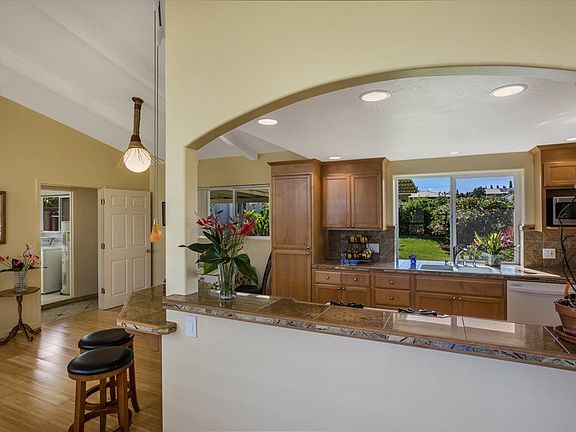 Great location in the heart of Waimea town, with just the right amount of sun and rain for morning rainbows and lush green foliage. Open kitchen design has granite-tiled counters, a breakfast bar and dining area. This home has 4 bedrooms and 3 baths including a spacious guest wing with private entrance. Mauna Kea and Puu Opelu stand over the private fully fenced backyard with a large covered lanai and outdoor shower.Enclosed area in the back yard has a large tool shed for projects and storage. Enjoy organic avocado, banana, tangerine, Meyer lemon, orange, peach and Tahitian lime trees, as well as tropical plants and flowers.Current owners grow a variety of vegetables in their organic garden. Squash, green beans, pumpkin, beets, snap peas, bok choy and more. Shopping, restaurants, parks and schools are within walking distance, less than a mile away. Gold Coast Beaches are 20 minutes away. Centrally located between Hawaii Preparatory Academy, Parker School and Waimea Elementary and Middle Schools.Parking for 4 on the side of the house. Easement in place for Private Roadway to access the home.