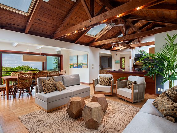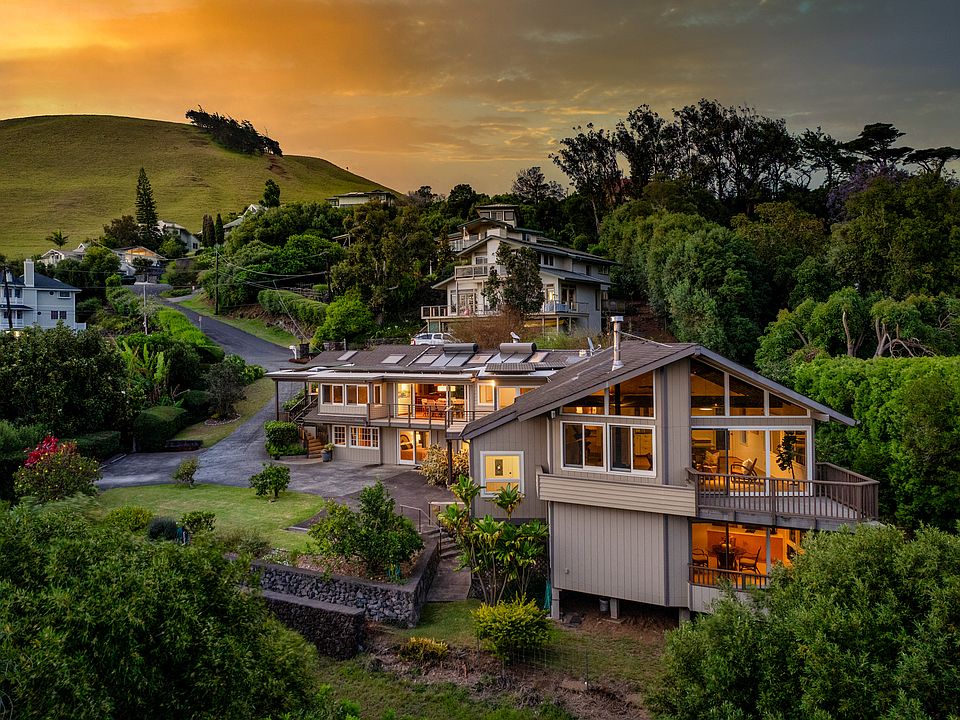 Tucked into a peaceful hillside in the heart of Waimea and sheltered by the majestic Pu’u Hoku’ula, this upgraded multi-level home rests at the end of a cul-de-sac, offering privacy, comfort, and sweeping mountain views. The home, built as a two-unit condo, comprises of three separate living quarters with over 5,000 sf, perfect for multi-generational family looking to dwell together. The property is beautifully landscaped with terraced gardens of flowers and fruiting trees flanking the home.