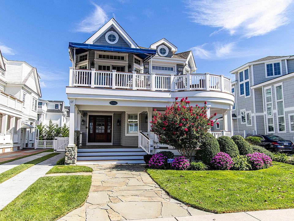 Beautiful BEACH BLOCK home located third house from the beach on a fabulous block with under ground utility lines. Enjoy exceptional ocean views due to the low, rolling dunes, steps to the beach and the short stroll to town. The three story design allows five bedrooms, five and a half baths, first floor family room spanning the width of the home which overlooks an in ground, heated swimming pool with sun shelf. The comfortable great room has beautifully painted cabinets, newer stainless steel appliances, stained hardwood floors all flowing to a large elliptical deck that has southern exposure. The third floor master suite is private, has a large marble en suite bath and private deck. Wake each morning to a wonderful sunrise. The home has great curb appeal, large covered front porch, attractive landscaping, elevator and a cedar shake exterior. The home is sold fully furnished with minor exceptions.