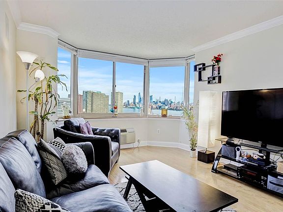 Large 1 Bed/1 Bath with fabulous views at the Luxurious Portofino. Situated on a quiet tree lined street, this waterfront home features bay windows overlooking NYC, brand new modern flooring, stainless steel appliances, large walk in custom built closet & W/D in unit. Amenities include; 24 hr concierge, gym, heated pool, resident's lounge, business lounge & children's playroom. Rent includes water, hot water, high speed internet & Direct TV. Short walk to all major transportation Newport & Exchange Path stations, light rail, ferry & bus. Close to Newport Mall, groceries & tons of restaurants and boutique stores that Jersey City has to offer. Parking available to rent in the building.