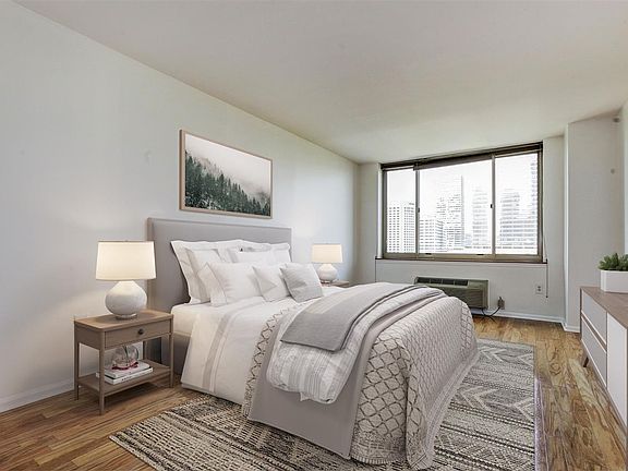 Enjoy spectacular views from this Large, 2 Bed/2 Bath with oversized bay windows overlooking Manhattan & the Hudson. Being the most sought after line in the building (largest 2 bed layout), this home features very large split bedrooms, kitchen with SS appliances & granite counter tops, recess lighting, brand new bathroom vanities, newly upgraded modern floors, full size washer/dryer and multiple walk in closets. Building amenities include; Heated Pool, Gym, Residents Lounge, Ping Pong Table, Business Lounge, 24 Hour Concierge & Children's Play Room. HOA dues include Direct TV with HBO & High Speed Internet. This Waterfront Community is a short walk to Newport & Exchange Place Path stations, NJ Light Rail, Newport Mall & tons of boutique stores & restaurants in Downtown JC. One garage parking spot included.