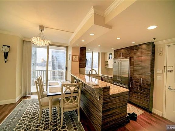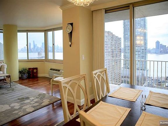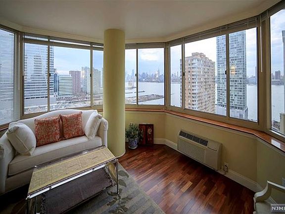 19th floor with balcony, corner unit with 3 bedrooms and 2 full baths half bath. this renovated unit offers the stunning manhattan and hudson views, south and east exposure, hardwood floor throughout, washer and dryer, one deeded parking. this building has outdoor pool with sundeck and barbecue area, 24 hour concierge and doorman, community room, gym, kids play room, business center, seasonal shuttle to the path, maintenance fee includes hi-speed internet and direct tv, hot water , close to path