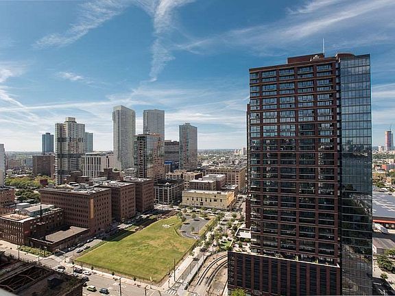 Garage Parking included! Bright, Beautiful south facing, corner home on the 24th floor with gorgeous River views and private terrace! This freshly painted, large 2 bedroom 2 bath unit has a spacious layout, gleaming wood flooring, large master bedroom, two large baths, brand new washer/dryer in unit and a gleaming, modern kitchen with top of the line appliances, radiant heat in the floor and a window. Endless amenities include pool, kids playground, fitness room, residents lounge, and full service concierge. Close to all modes of transportation PATH, Light Rail and Ferry. Complementary shuttle to Newport during winter months. Indoor garage parking available! The space is a premium spot on 2nd floor with easy access into building! Cable and Internet included in rent! 1 month broker fee