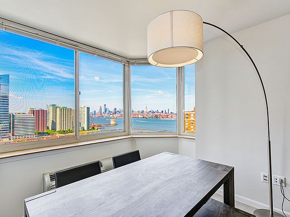 Live the luxury life of The Portofino Waterfront Residences in Downtown Jersey City with this 1 Bed 1 Bath Condo. Stylish and elegant and all the best of amenity-rich living right at your fingertips. This North East facing home showcases incredible views of the sparkling NYC lights! The kitchen features white cabinetry, granite countertops and a timeless subway tile backsplash. The king size bedroom is very spacious and the bathroom offers a spa-like retreat with beautiful ceramic and carrara marble tiles. Recently renovated hardwood floors throughout, a washer and dryer in unit and 1 car parking wrap this amazing package. The Portofino Waterfront Residences indulge residents with resort-style living that includes a 24 7 doorman, heated swimming pool with an outdoor deck, workout area, business center, lounge and children's playroom. Basic cable and Internet are included in the monthly maintenance fee.