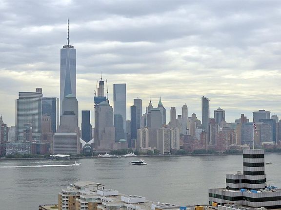 Best building on the Jersey City Waterfront. High floor unit (one floor below penthouse). Many upgrades including maple hardwood floors, granite countertops, stainless steel appliances and marble baths. Includes 1 parking space. Stunning downtown NYC views. Full service building offering 24 hour concierge service, security, award-winning seasonal outdoor pool and roof garden, community room, fitness center, childrens play room and business center. Maint. fee includes TV cable and internet.