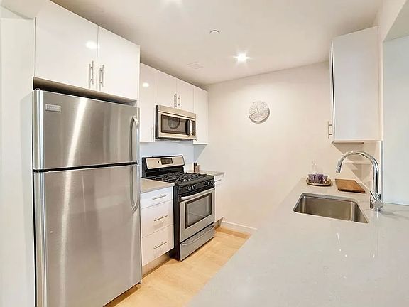 This fabulous 2 Bedroom apartment features a massive living room, oversized windows bringing in tons of natural sunlight, private outdoor space, central heating & air-conditioning, and beautiful hardwood floors. Kitchen details include quartz countertops, beautiful stainless-steel appliances, a breakfast bar, and custom cabinetry. A huge bedroom easily fits a queen size bed