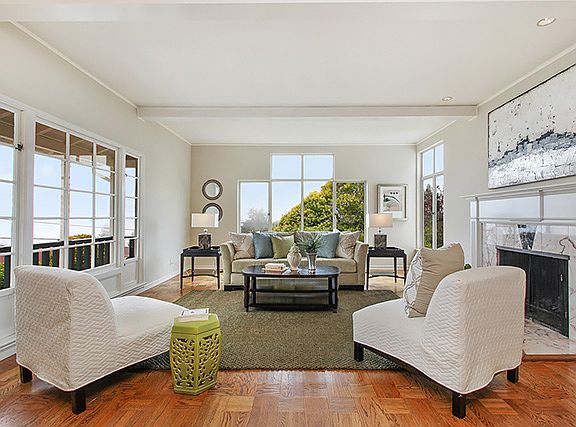 Beautiful & bright home w/Bay views, fine details, remodeled romantic master ste. 4BR/3BA, 1 BR/FR w/full BA on main lvl. Inviting LR w/fireplace & parquet flrs. Formal DR. Tiled eat-in kit. w/access to very spacious grdn. Sep. parcel incl in sale.