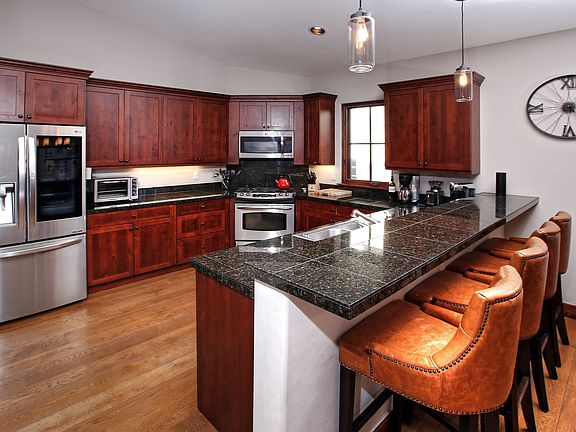 Everything you've been looking for in a home. Ideal location on Aidan's Meadow Park with views out front to the New York Mtns. On the inside, owners love the flow of the main floor which includes the master suite and secondary bedroom with full bathroom. The 2-bedrooms upstairs have en-suite bathrooms. High-end finishes throughout including new appliances, hardwood floors & new patio with outdoor fire pit. The unique highlight is the potential with the 1700+/- sq.ft. unfinished basement.