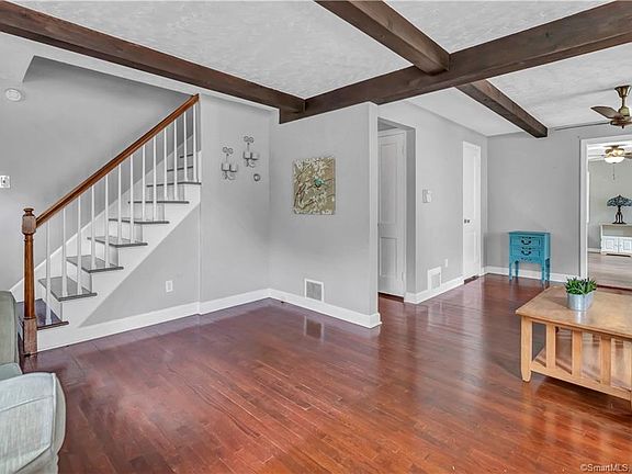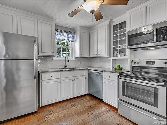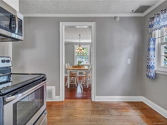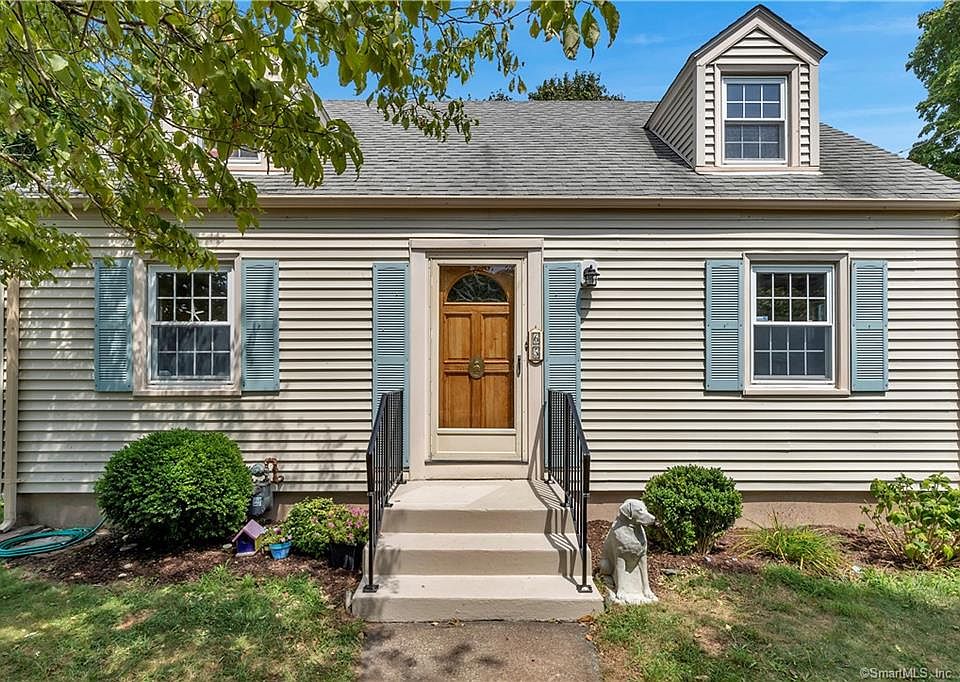 Charm and convenience are found in this updated cape minutes from everything; located in a quiet neighborhood with sidewalks, this rare find with updates like stainless steel appliances and central air as well as storage and extra living space offers so much more than expected. A pleasant entry gives you access to either the dining room on your left and the over-sized living room on your right, just beyond is the additional living space that could be a four season sun room, play room or even a third bedroom (there is a closet). Also found on this floor is a beautifully updated white kitchen with stainless appliances, two more closets, a full bath (marble details) and a petite mudroom. Upstairs a tasteful half bath at the landing and two comfortable bedrooms with lots of natural light and larger closets. Just when you think you've seen everything, you haven't... this home also has a full basement, with one finished room in the basement with upgraded tile flooring; a detached garage large enough for over-sized vehicles (the current owner stores a full size pick up truck inside) and a large, flat yard with patio and raised garden beds complete this relaxing and enjoyable neighborhood gem.