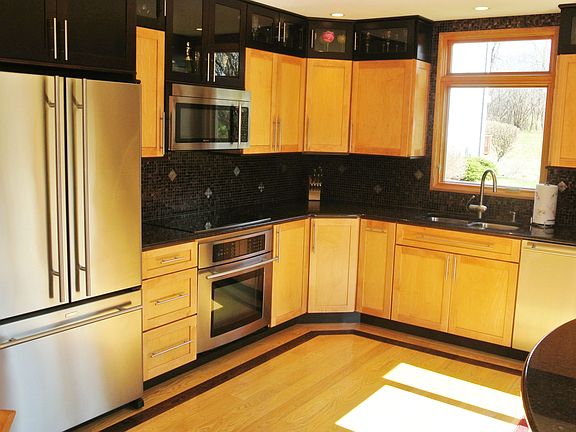 Awesome Foxmoor home with a private backyard on a cul de sac. Updates galore. Open feel in the living room dining area. Hardwood floors with inlays on first floor. Beautiful kitchen with 42' cherry cabinets, tile backsplash, granite counters, stainless steel appliances, and plenty of lighting. Slider leading to 40 x 12 newly stained deck. Eating area with bay window leads to the family room and floor to ceiling stone fireplace. Vaulted ceiling and skylights. Good sized bedrooms. MBR has hardwood floors and updated master bath. Lower level is finished with a rec area and 4th BR/office. Great neighborhood, nice lot, move in ready!