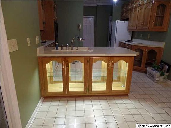 This beautiful, custom, one story home located in one of Heflin's most desirable subdivisions. Full brick, 3 car garage, approx 1.39 +/- acres with detailed millwork, arched doorways, skylights, dimensional roof, and built in individual speakers,in each room. Home offers three bedrooms, 2 full baths,and 2 half baths, family room with vaulted ceiling, brick fire place with gas logs,formal dining room, kitchen with extensive cabinetry, some lighted, built in desk, all appliances open to casual dining. Laundry room convenient to bedrooms. Unfinished basement has great storage closets, half bath and saferoom. Wired storage building,generous landscaping, with beautiful shrubs and trees,deck, and extra storage with stairs from inside garage. We