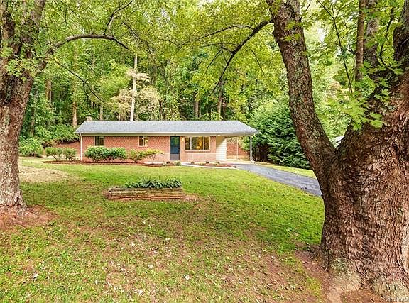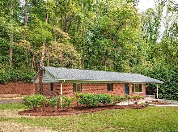 Welcome to the neighborhood! This adorable brick ranch is perfectly sited on a triple corner lot, framed by beautiful old growth trees. Inside the home you will find custom architectural upgrades, such as modern built-ins, recessed lighting and a dedicated laundry room. The kitchen overlooks a private backyard, with a large patio for dining. Entertain on chilly nights by the outdoor fireplace and pergola. Carport with storage makes parking and carrying groceries into the house easy as pie! Don't feel like cooking? A quick walk around the corner brings you to an Asheville favorite - 12 Bones BBQ! Brand NEW ROOF, fresh paint inside and out, professionally done low maintenance landscaping and stone drainage just completed. Perfect starter or retirement home!