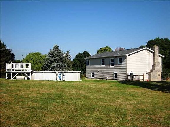 Plenty of Space Here: 3BR w/4th BR semifinished, 1 Full BA also roughed in area for powder rm, 1080 sq.ft. Raised Ranch located on 9.47 Acres of open land ! Home has spacious eat-in kitchen (all appliance remain), Lg picture window in living room & wall to wall carpet installed (6/11), Rec rm is unfinished and ready for your personal touch, cheerful laundry room w/window, sharp brick woodburning fplc. - Outside enjoy the 24' above ground pool w/plenty of stroage space for pool supplies, garden tools, minibikes or tractors in the outbuilding or barn, lots of room to roam here!