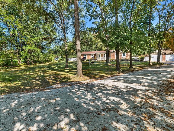 Your paradise estate awaits in this ranch home with 1.5 wooded acres and fantastic second garage/workshop! The home has a fantastic layout and is ready for your updates! Family room den shows off exposed beams and fireplace with a walkout to patio! The cottage style fence around level yard is surrounded by trees offering privacy and charm. While the home has a two-car attached garage there is a second garage/workshop with 12x10 doors, and a pull through bay making it a great space to work on your cars & boats! Since it's extended in depth it is set up for a workshop in the back with plenty of storage and counter space!