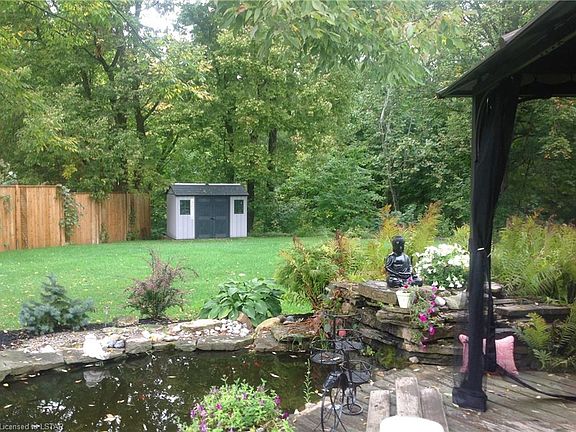 EXECUTIVE OASIS (OVER 4000 sq ft. TOTALLY RENEWED ) 2 STORY HOME WITH 3 CAR ATTACHED GARAGE (BASEMENT ENTRY) 6 CAR PARKING ON CONCRETE DRIVE, LOCATED ON A QUIET CUL-DE-SAC IN A EXCLUSIVE AREA OF DELAWARE BACKING ONTO THE DINGMAN CREEK. THIS HOME FEATURES AN OPEN 2 STORY FOYER, WITH 4 ENTERTAINMENT AREAS, NEW GOURMET KITCHEN, ISLAND COUNTER, GRANITE TOPS AND WALLED PANTRY, NEW HARDWOOD AND TILE FLOORING. ALL NEW WINDOWS EXCLUDING BAYS, NEW BATHROOMS, BOTH GAS FIREPLACES HAVE BEEN RE-FACED, FULL 3 CAR GARAGE WITH INSULATED WALLS. THE REAL LIVING IS DONE OUTSIDE WITH A COMBINATION OF PATIOS, DECKING, GARDENS, POND, AND GAZEBOS IN A PRIVATE FENCED YARD ALL BACKING ONTO THE DINGMAN CREEK AND A BEAUTIFUL FOREST.