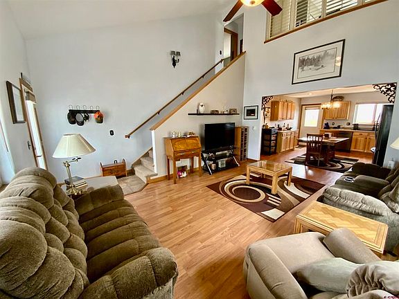 Move-in ready 3 bdrm/2 ½ bath Curecanti Townhome in immaculate condition features an updated kitchen with hickory cabinets, and a main floor primary bedroom suite. Out back is a large deck with Trex decking and a flagstone patio all in a fenced back yard. Spacious 2 car garage with extra storage cabinets and shelves. Both full baths have a tub and tiled showers, bedrooms have carpet and the kitchen and living room have wood laminate flooring. Great, well-built unit in 2006 with a metal roof and not far from downtown conveniences. 65 Bambi Lane is being sold fully furnished with recliners, tables, etc. from Miller Furniture. You are just 5 minutes from the Dos Rios Golf Club and 10 minutes from the Iola boat dock at Blue Mesa Reservoir. Easy lock and leave townhome with maintenance free exterior and the $200/month dues cover the underground sprinkler system watering/mowing, shoveling and exterior maintenance. Call for your showing on this amazing opportunity in Gunnison!