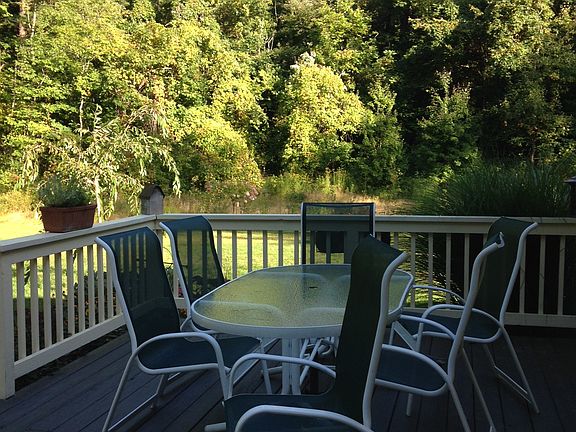 Our home is a Cape Cod-looking ranch with attached 2-car garage. The yard is nicely landscaped with shrubs, ornamentals and perennials. We have a brick walk leading to the front door and window boxes -- yes, it has curb appeal! The deck is large and private with a patio and hot tub. Our dining room has lovely french doors with a view of the backyard and the upstairs bedroom is quite large with skylights and 1/2 bath. All the rooms are nicely decorated with pastel colors. The kitchen is very workable with a small bay window over the sink, overlooking the front yard. The laundry area is conveniently located near the kitchen and the office is located in the back of the house so its' away from common areas and quiet.