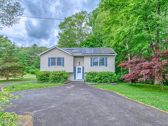Don't miss this charming well maintained 3-bedroom, 2-bathroom home, offering 1,820 sq ft of comfortable living space. Classic layout, perfect for both relaxing and entertaining! The open floor plan integrates the vaulted ceiling living room, dining area, and kitchen, with ample counter space and abundant cabinetry, making meal preparation a breeze. Adjacent to the dining area is a spacious (and low maintenance!) Trex deck, ideal for enjoying warm summer evenings. Two nicely sized bedrooms and a full bath with tons of storage complete the main floor. The walk-out finished lower level offers a primary bedroom with WIC, a convenient den and a laundry/utility room. Outside, you'll find a detached two-car garage seviced by a blacktop horseshoe driveway. The home is equipped with rented solar panels, providing an eco-friendly energy solution and reducing your utility costs. And even better, there is an on-demand Generac generator so power outages will never disrupt your home life again! Hurry and embrace the opportunity to make this well-maintained raised ranch your new home!