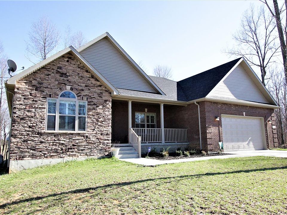 Absolutely beautiful brick & stone ranch in like new condition on a huge, wooded lot only needs you to make it home! This desirable open floor plan features lots of beautiful, hand scraped hardwood floors from the entry into the dining room, great room, kitchen & master bedroom. The large dining room could also be used as an office or a formal living room. You will love the gourmet kitchen that overlooks the huge great room. Granite counters, stainless appliances, big walk-in pantry, a breakfast bar & a casual dining area make this space user friendly. The split floor plan offers privacy for the owners suite & showcases gorgeous hardwood flooring, tray ceiling, large walk-in closet & a large bath with all the bells & whistles. The remaining bedrooms are large with the basement bedroom featuring a walk-in closet. Plantation shutters on the front windows. The walk-out basement showcases a huge living space big enough for whatever you desire. An additional finished room can be used as a office or home gym. Nine ft ceiling upstairs & in the basement lend an airy feel to your spacious & comfortable home. The wooded lot is shaded & huge! Call today to make this your new Kentucky Home!