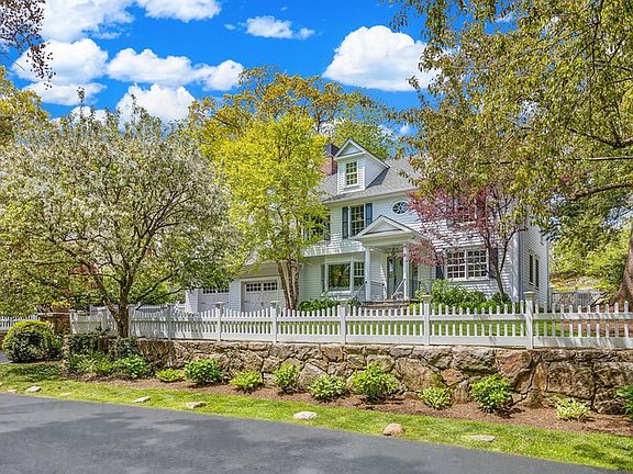 The ultimate Storybook neighborhood at the end of a cul-de-sac with a walking trail into town. Total privacy while still being minutes to shopping, train, highway and restaurants. New England style colonial with a Cape Cod vibe. Located on a secluded road in a coveted neighborhood where you can cycle, go for scenic walks into town or nature and has numerous community block parties throughout the seasons. Luxury amenities include Sonos Indoor / Outdoor Surround Sound System, new Bosch Dishwasher and Sub Zero Refridgerator/Freezer & Wine Fridge, Jetted Soaking Tub in Master Bath and more. Beautiful moldings, architectural details and built-ins throughout. Main level features Family room with beautiful bay window and fireplace. Formal Living Room / at Home Office with French doors and built-ins. First level bedroom ideal for guests, au pair or office. Gourmet kitchen with Thermador appliances, large pantry and eat in kitchen with stylish built in banquette. Elegant formal dining room with French doors opening to the cozy, private and peaceful gardens. Attached two car garage opens to oversized mudroom. Luxurious master suite includes a sitting area / exercise room, fireplace, huge walk in closet and beautiful master bathroom with jetted tub and separate standing shower. Two additional bedrooms with a full bath complete the second level. Spacious third level playroom / guest suite with full bath. Hardwood floors throughout. White picket fenced in private front yard with large grassy area and side yard perfect for a play set. North Street school district. Property Highlights and Special Features: Hardwood Floors Throughout Recessed Lighting Throughout Guest Suite Home Office Patio Entertainment Area Lower Level City Sewer CAT 5/6 Wiring Sprinkler System Auto Garage Door Heated Garage Bay Windows French Doors Luxury Master Bedroom Suite Luxury Master Bath Luxury Walk-in Master Closer Sonos Surround Sound Indoor / Outdoor Speakers Playroom Family Room Lower Level Laundry Central Air Security System Tree Lined Fireplaces Breakfast Nook Custom Moldings throughout Exercise Room Sub Zero Wine Fridge Bosch Dishwasher Gas Heat / Cooking Fenced Yard Formal Dining Room Smoke Alarms Cul-De-Sac Street with Walking Path to Town Separate Mudroom