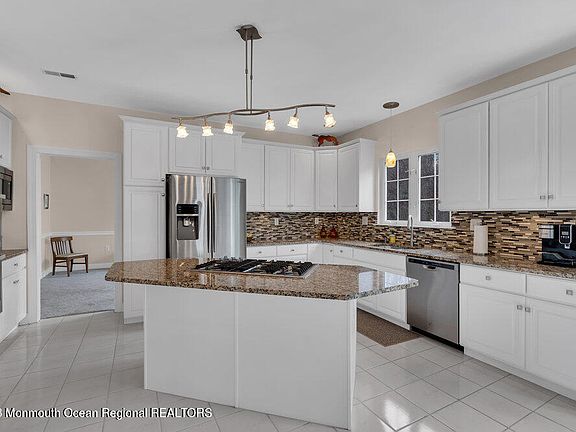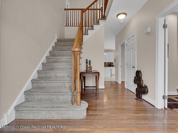 Beautiful brick front colonial with 4 bedrooms, 2.5 baths located in the desirable Oak Glen section of Howell. Come inside to the first floor which includes a formal living room/dining room, office with French doors and a sunken family room with a gas fireplace. The bright and open kitchen has newer appliances and an island. The kitchen dining nook with sliders opens to a spacious deck overlooking a parklike setting. A sizable basement has high ceilings and is ready to be finished. The second floor features 4 nicely sized bedrooms with a walk in closet in the primary bed room and 2 linen closets. The 2 car attached garage offers additional space for storage. The recently re-done roof is just 4 months old. Move right in and enjoy everything the Manasquan Reservoir Park has to offer!