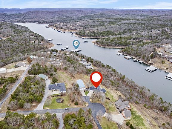 It's the Dawn of Paradise @ 65 Brianwood! This luxurious turn-key, furnished waterfront estate will provide not just a home but a lifestyle in a setting that is truly unmatched. Gated for supreme privacy w/n intimate subdivision this 2.9 acre lakefront estate was constructed w/ exceptional craftsmanship, attention to detail, & a sense of adventure & excitement at each & every turn featuring a brand new breathtaking 180 degree lake, mountain, & adorable day/night village view w/breathtaking sunrises each & every glorious day, this home features: Five XL bedrooms(3up/2down), a water view primary bedroom w/more water views in spa-like ensuite complete w/custom tiled shower, enormous walk-in closet w/custom shelving, laundry/mudroom. The highlight to this home is hands down the delicately thought out & expansive entertaining areas including an incredible 180 degree lake view sunroom, chef's kitchen w/ built in appliances, thoughtful custom cabinetry, open & airy living to kitchen w/fireplace, Brazilian Cherry hardwood flooring, sky high vaulted ceilings, & floor to ceiling windows flooding in tons of natural light. The lower level features:two more generous bedrooms, a 3/4 bath, spacious family room, storage galore, & a huge 40ft covered deck w/ composite decking. Need room to tinker? There's an attached oversized two car garage & a detached 30x70 fully insulated drive through shop building w/mower & ranger included that will fit all the lake toys, RV, side-by-sides & then some! Ready to hit the water for a little lake action? Take a golf cart to the dock where the sellers are offering a 10x30 boat slip w/lift for 70k, complete w/ storage locker, swim deck & unforgettable memories for years to come! 5 minutes to downtown Kimberling City shopping, restaurants, seasonal farmers market spa's & more. Come see why people call Table Rock Lake 'Paradise' & experience the rise of each morning the very best way, each & everyday, waterfront @ 65 Brianwood Table Rock Lake.