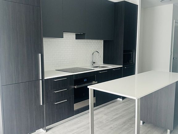 Discover the best layout in the building-a flawlessly designed 1 Bedroom + Media suite where every inch of space is thoughtfully utilized. Welcome to modern luxury living at this newly built residence by the renowned Times Group. Vibrant and stylish, the building blends comfort with convenience, providing the perfect environment for both relaxation and entertaining.This bright, south-facing unit is filled with natural light and features floor-to-ceiling windows in both the living room and bedroom. The bedroom offers a spacious walk-in closet with custom shelving, while an oversized three-panel entry closet ensures exceptional storage. The versatile media area functions perfectly as a home office or flexible space to suit your lifestyle.The modern kitchen boasts integrated built-in appliances, sleek quartz countertops, and refined finishes that elevate everyday living. A central island provides extra counter space, added storage, and seating for two-ideal for dining or hosting. Enjoy 9' smooth ceilings and the convenience of a modern ceiling light already installed in the living area. A full-length balcony extends your living space outdoors, perfect for unwinding.The suite includes an LG ThinQ washer and dryer located in a separate laundry room with additional storage. Residents have access to premium amenities such as a rooftop lounge with BBQs, a fully equipped gym, billiards, study and party rooms, and 24-hour concierge service.Ideally located just steps from Eglinton Station and surrounded by lively shops, cafes, and restaurants, 65 Broadway Avenue offers an exceptional urban lifestyle-combining style, convenience, and comfort in one outstanding address.