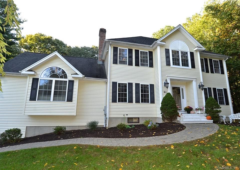Desirable Brookfield Estates! Four bedroom, two and half bath colonial located on a very private lot, set off the road, peaceful and picturesque. Large eat-in-kitchen, center island, 1 year old Black Stainless appliances, French doors to large great room with Cathedral Ceilings, fire place, two Paladin windows, window seat, ceiling fan and hardwood floors. Sliders from kitchen to large double tired deck (main deck 19x12, upper deck 14x12) leading to 30' round above ground pool and cement patio (17.5x11.8). Great for outdoor entertaining! Enjoy your heat filled days in the pool, and your spring and fall nights around a fire pit. Formal Dining room with hardwood floors opens to kitchen. Office with French door and hardwood floors. Laundry and powder room complete the main level. Master bedroom with walk in closet, full bath with Jacuzzi tub, stand up shower and new counter top/sink. Three additional bedrooms and full bath with new counter/sink on upper level. Lower level, with exercise room, sitting room and large storage area. Large 20x11.8 shed, Stone walk ways and walls. Agent/Owner