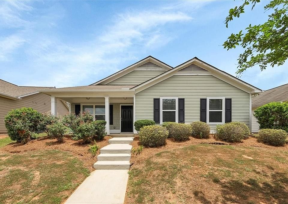 PRICE IMPROVED! Step into this meticulously maintained 3-bedroom, 2-bathroom ranch-style home, perfectly suited for first-time buyers or savvy investors. Built in 2013, this gem offers over 1,500 sq. ft. of pristine living space. The airy layout seamlessly connects the modern kitchen—complete with quartz countertops and stainless steel appliances — to the inviting dining area. Vaulted ceilings grace the master bedroom, where a walk-in closet and an ensuite bathroom await. Picture yourself sipping your morning coffee or unwinding in the evenings on this charming rocking chair front porch. Nestled in a quiet neighborhood with walkways, you’re also within walking distance to the Newton County Cricket Frog trail. Covington square, shopping, dining, and recreation are all conveniently nearby. Don’t miss this opportunity—schedule your showing today!