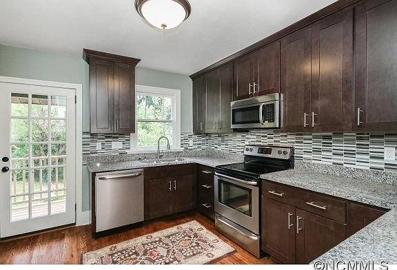 -Gorgeous Craftsman style bungalow in West Asheville, just one block from Haywood Rd. Completely renovated in 2015, this spacious home features a brand new kitchen, plumbing, electrical and HVAC, finished walk-out daylight basement with multiple bonus rooms. Relax on the covered front porch and entertain on the large brick patio. Classic character with all the conveniences and comfort of a modern home and an easy walk to west side or River Arts!