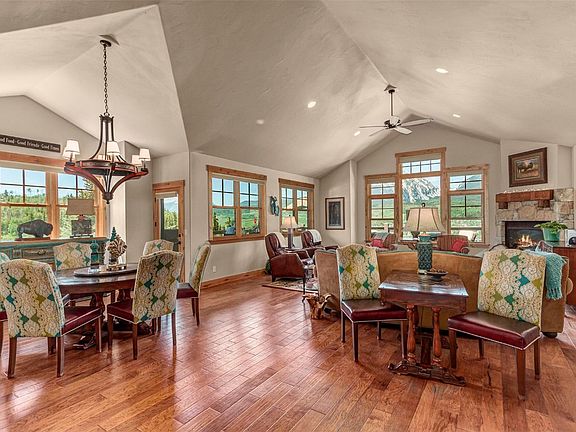 Spectacular mountain views from this wonderful mountain home located on a very private lot. This 4 bedroom, 3.5 bath home has multiple decks and a patio to enjoy the views, sunsets and time relaxing in the private hot tub. Walk from the two car garage to the open spacious living/kitchen area and the primary suite all on the main floor. Excellent finishes throughout, beautifully furnished, large guest bedrooms and a cozy family room to enjoy games and movies with the entire family. Go paddle boarding and fishing on the private lake or on a hike through the network of fantastic trails in the neighborhood. Only minutes from restaurants, the recreation center, the Silverthorne Pavilion, the Lake Dillon Theatre, 4th Street Crossing and the Blue river. Copper, Keystone, A-Basin and Breckenridge ski areas are all less than an hour from your front door. Homes in this quiet, private, beautiful subdivision rarely become available.