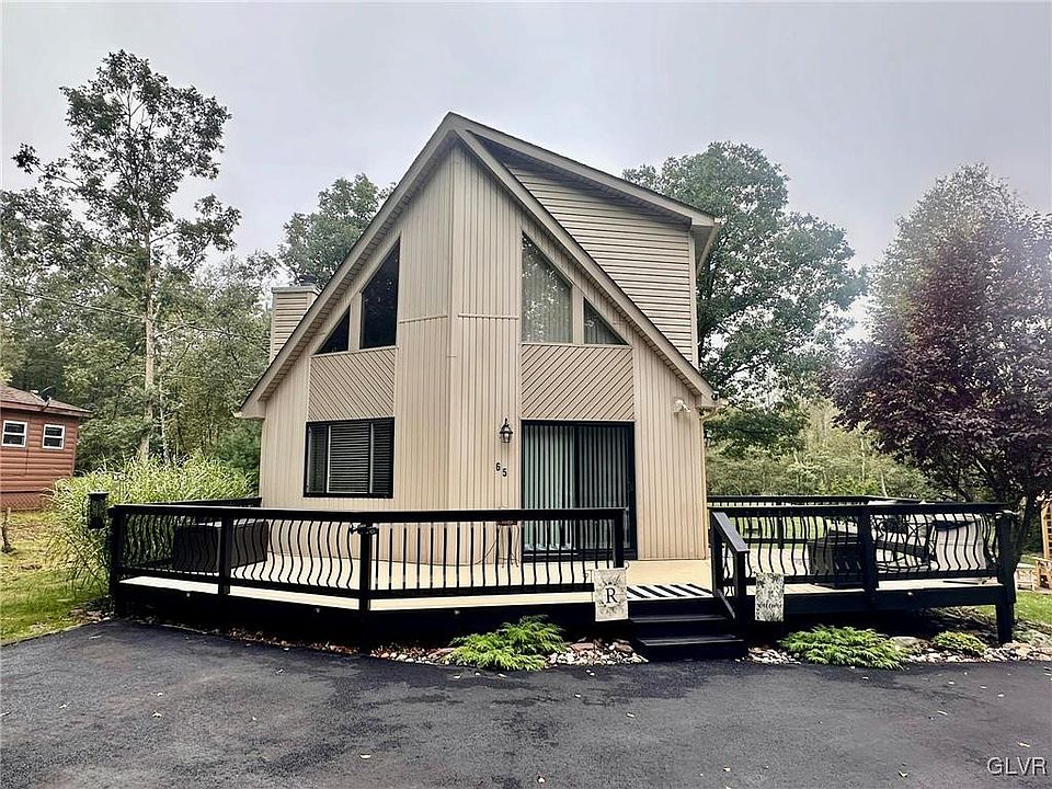 This 4 bedroom, 2 bath chalet is located in amenity filled Towamensing Trails. Well maintained inside and out. This home features an open floor plan with high ceilings, and natural light. The closed in loft is a great sized primary bedroom! Enjoy nature from the front deck or paver patio with firepit in the large, flat yard. Schedule your showing today and don't miss out on this beautiful mountain home!