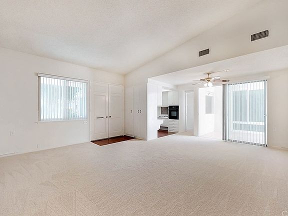 Are you looking for the most beautiful, bright home to feel happy , know your neighbors, have two bedrooms plus an office ( wait, what an office? yes they added an office!)with a full bathroom and then also a toilet and sink in the master suite that overlooks your park-like front ? If so , come see it now! In your private single story cottage with no one above or below you will also have a inside private atrium with plenty of sunshine and comfort and privacy. This beautiful home has fresh paint, new luscious carpet and new flooring in the kitchen and some in the office. Additional features are so many to mention but here are a few; new disposal, all appliances including the fridge owned by HOA( no charge to you)stackable washer and dryer included, central air and heat, newer windows and doors, ceiling fans.The added bonus to your beautiful cottage is easy parking close to your home. Laguna Woods Village is a 55+ community and features 2 championship gold courses, tennis, pools, horse stables, archery, bocce, pickelball, fitness centers ,garden centers, computer lab, wood working shop,art studio library, theater,over 200 clubs to enjoy. Free bus service offered in community. This community also offers convenient golf cart accessible pathways, 24 hour gate entrance.Don't forget Laguna Beach is only 8 miles away. Monthly HOA dues include property taxes, water, trash, basic cable, greenbelt maintenance and building maintenance. Hurry your dream home is waiting for you!!