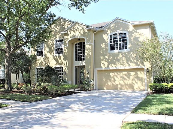 Stunning, move-in ready, 5BR/4BA Pool home in the established community of Camelot Woods has it all! Upon entering the home, to the left you will find the Formal Living Room and Formal Dining Room with loads of natural light. Moving into the Kitchen, you find it is very open and features Corian countertops, a built-in oven and gas cooktop, 42" cabinets, an eat-in area, and marble tile floor. From the Kitchen, you enter a beautiful, bright Sun Room, also with marble tile and french doors leading to the lanai. From the Sun Room, you can move to the Great Room, which includes french doors leading to the lanai. This layout is perfect for entertaining! The fifth bedroom as well as a full bathroom are located off the Great Room which makes it perfect for guests! Ascending to the fully carpeted second floor, you will find the Master Bedroom, 3 additional bedrooms, a built-in desk plus additional cabinets, and a Bonus Room that includes a bathroom, a large walk-in/storage closet, and 2 sets of french doors leading to a deck the length of the house that overlooks the pool! The Master Bedroom includes a large walk-in closet while the Master Bath includes a dual sink vanity, garden tub, glass stand up shower, and another large walk-in closet. Enjoy your morning coffee or evening cocktail while sitting by the pool with a fully screened lanai and paradise view of the conservation area at the back of the property. Your oasis awaits! Call me today to schedule a showing!