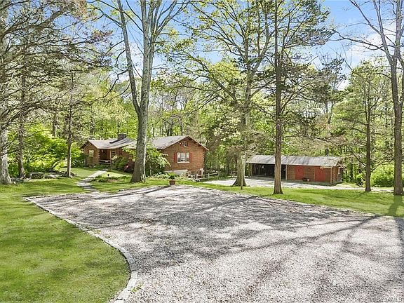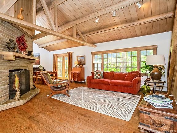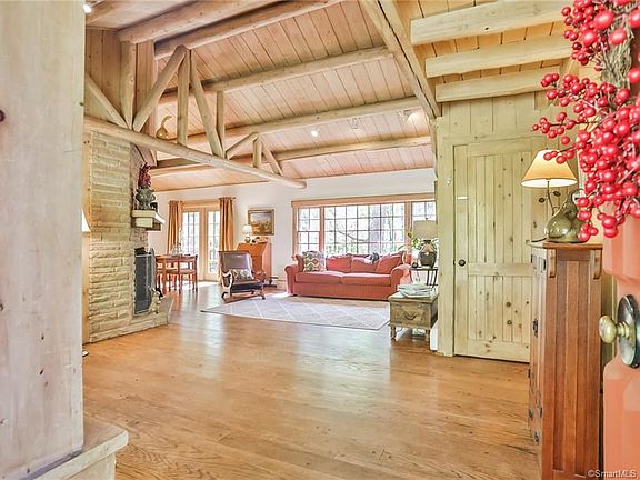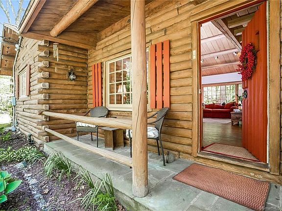 Tucked away on one of Easton's Scenic Roads is this charming "Ward" cedar log home. The former home of artist Ray Quigley, its chock full of architectural details including 2 stone fireplaces, exposed hand hewn beams, wide plank hw floors, & custom doors. The open concept living/dining room w/ vaulted ceilings is perfect for entertaining. The rustic eat-in-kitchen boasts quartz tops, ss appliances & plenty of storage. The sunroom has new carpet and sparkling windows. The BR layout offers lots of flexibility - the original master and its huge walk-in closet are on the main living level offering one-level living. A 2nd spacious BR is on the main level as well. They share an elegant new full bath with deep soaking tub and handsome stonework. The oversized master bedroom with 2 walk-in closets and new ensuite sea glass bathroom is on the ground level. The ground level also features a huge family room w/ hearth, an office w/ private entrance, a half bath and laundry/utility room. Relax and watch kids/dogs play in the private backyard from a deck that overlooks lovely perennial gardens. A carport w/ 2 attached stables allows for the possibility of horses or a workshop. And a walk-up attic allows for plenty of storage. Small-town feeling, award winning schools, and lots of space make this an idyllic spot only 1 hours from NYC and 20 min from the train. Imagine picking apples in the nearby orchards next fall or buying locally grown organic produce at one of the many Easton farms!