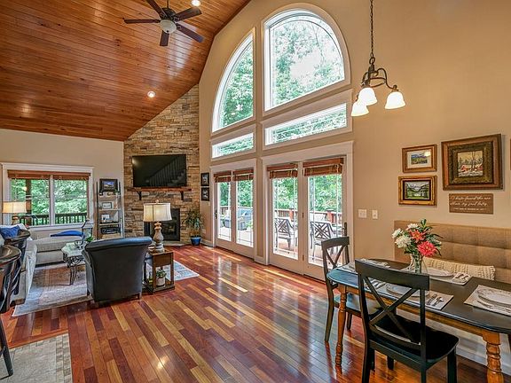 Welcome to your custom home in the highly desirable Bear Paw Resort! This 3-bedroom, 3.5-bathroom residence offers a WOW factor from the moment you drive down the concrete driveway and take in the meticulously landscaped grounds with established flower and shrubbery beds. Enjoy the beauty of the outdoors from two levels of expansive decks and porches. Step inside to the spacious Great Room, where high-end touches abound. The room features a floor-to-ceiling stacked stone gas fireplace, elegant wood floors, and a tongue-and-groove vaulted ceiling. The kitchen is a dream, equipped with matching stainless steel appliances, a beautiful tile backsplash, and an adjacent breakfast nook. The main level also includes a laundry room, a half bathroom, and your luxurious Master Suite, ensuring comfort and convenience. Ascend to the loft, where you'll find two additional bedrooms, a bathroom, and extra space ideal for a desk or reading nook. The fully finished basement offers even more living space with three bonus rooms that can be tailored to your needs. Another full bathroom and plentiful storage space complete this versatile lower level. This home combines luxury and functionality, making it the perfect retreat for those seeking elegance and comfort in the heart of Bear Paw Resort. With a host of amenities including a 24/7 gated entry with a security guard, a marina, a refreshing pool, tennis/pickleball courts, basketball courts, and a community clubhouse, this home in Bear Paw is the place to be!
