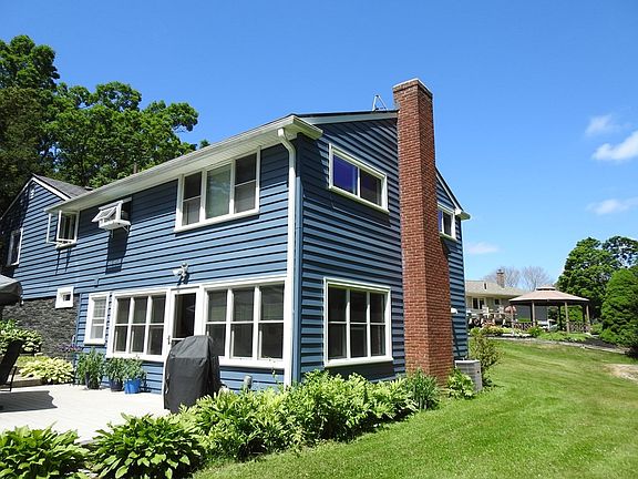 Beautifully appointed ranch in the pristine settings of a quiet neighborhood yet only minutes from shopping, town beach, boating, highway access. A hidden gem sitting on almost an acre. Morning coffee on the front porch listening to songbirds and evenings on the patio overlooking an expansive yard. Hardwoods and radiant heated ceramic tile floors. Stainless steel appliances, oversized fridge and double oven gas stove surrounded by Shaker cabinetry and granite counter tops. 4 Bedrooms, double closets, 2 full bathrooms. Partially finished basement, radiant heated floors, family room, wood burning fireplace, home office and access to the composite patio and back yard. Interlock metal roof with 50 year warranty, new vinyl siding and new construction windows. Attached garage with Fagan door. Backyard shed with reinforced flooring. Weil McLain heating system. 1st level central AC. 2 Zone heat. Security system. Click the purple V upper icon for 3D virtual tour.