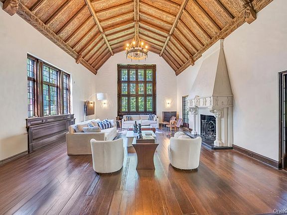 Located In Prestigious Great Neck Estates, This Impressive Colonial Exudes Historic Grandeur And Timeless Elegance. A Two-Story Circular Limestone Foyer With A Sweeping Wrought-Iron Staircase Opens Through Arched Doorways To A Grand Formal Living Room With Vaulted, Hand-Hewn Beamed Ceilings And A Sculpted Regal Fireplace. The Oversized Formal Dining Room Showcases Ornate Coffered Ceilings And Intricate Plasterwork, While Wide-Plank Hardwood Floors Throughout Balance Classic Craftsmanship With Modern Sophistication. A Fabulous Kitchen And Den Lead To A Year-Round Sunroom, Perfect For Everyday Living. The Home Offers Four Bedrooms Plus Finished Attic Stairs Leading To A Third Floor With Outstanding Potential For An Additional Bedroom, Home Office, Or Recreation Space. Exclusive Village Amenities Include A Waterfront Park, Tennis Courts, Pool Club, Summer Camp, And Private Police. Ideally Zoned For Choice Of Great Neck South Or North Middle School And Conveniently Located Near Town And The LIRR.