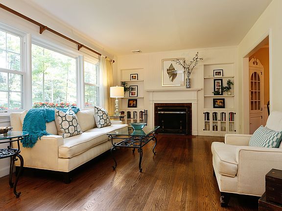 Classic Ranch in Sought-After Neighborhood is minutes from village, train & schools. Open floor plan with gleaming hardwood floors thru out! NEW Windows & Central AC. Built-In bookcases & corner hutch. First floor Master Suite, plus 2 large bedrooms. SUNNY, newly renovated, spacious walk out basement with kitchenette is ideal for home office, mother-in-law suite or entertaining. Beautifully landscaped flat back yard & patio with stone retaining walls. Enjoy space & privacy on side yard with custom fire pit & swing set. Taxes do not include STAR exemption of $1,662.