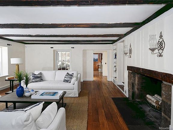 Charming and spacious vintage farmhouse attractively set on a a corner lot surrounded by New England stone walls. Located in the Historic Silvermine area. The warmth and graciousness of the floorplan is enhanced by a grand stone fireplace and a spacious, updated country kitchen. There is a finished room and bath on the third floor and side screened porch.
